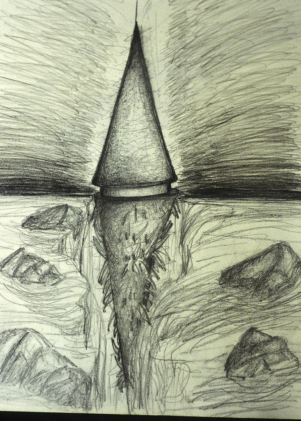 Elemental depiction of the fire spindle penetrating the primordial Earth.