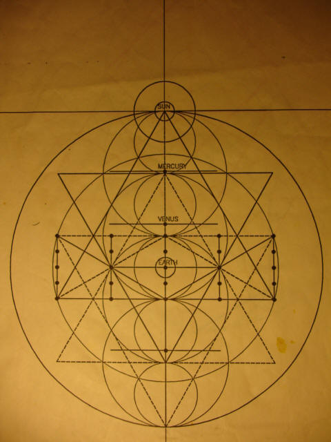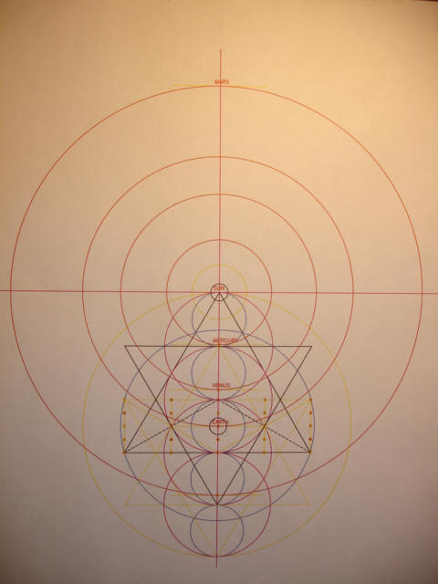 Fire Spindle superimposed on the solar system to elementally calibrate the orbital positions of the planets (see also wall paper).