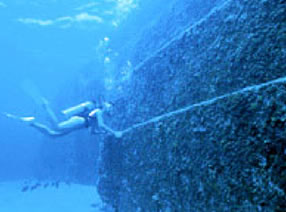 Egyptian pyramidal granite cap stone from Amen-emkhet at Dahshur; underwater structures off the coast of Yonaguni, Okinawa.