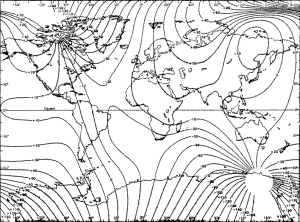 The Earth behaves as a sphere of magnetized (with N/S polarity) iron within a unified magnetic field. Earth's geomagnetic field fluctuations (traumas) [(1) geomagnetic force: equator (.0002 gauss) - poles (.0005 gauss); (2) daily geomagnetic intensity variation: 20-50 gammas] are academically, or generally, attributed to solar radiation fluctuation (eg.solar flares; electro-magnetic storms), and may also be attributed to planetary radiation and gravitational influence. Also, according to mid-Atlantic ridge readings of magnetic rock, geomagnetic pole shifting occurs frequently (eg.230,000-700,000 years), hypothetically causing tremendous biospheric and geological change (eg.new volcanoes, earthquakes, hurricanes, mega-tsunamis, floods, organic extinction).