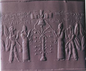 According to the Book of Genesis of the Bible, Man was placed in the Garden of Eden and tricked by a serpent [Hebrew: He Who Solves Secrets, or He Who Knows Metals (Nahash); borrowed from Sumerian: God Who Solves Secrets or God of the Deep Mines (An Bur; An Buru; An Buzur); Enki] to acquire an illegal knowing (procreation) that was reserved for the Elohim. Sumerian depictions show the serpent, Enki, arrested for his trickery. Enlil was outraged with Enki’s achievements of genetic engineering, and was also concerned of Man obtaining longevity; partaking from the Tree of Life and becoming immortal. So it was decided by Enlil to banish the Adam (humanity) from The Abode of the Righteous Ones (Edin), and he placed Cherubim and the revolving Flaming Sword at the east of Edin to guard the way to the Tree of Life.