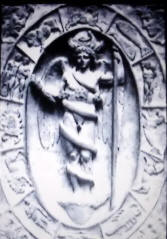 Roman Mercury with caduceus wand; the goat hints of great-grandson (son), Pan [sim.Noah]