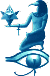 God of the Moon, Magic and Writing; Thoth holding Merkaba (star-tetrahedron) while kneeling on the Eye of Ra
